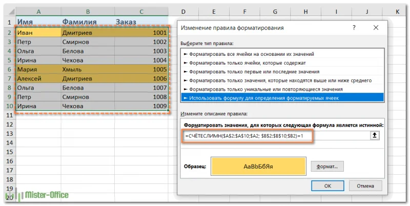 Чтобы создать правило условного форматирования на основе формулы, выполните следующие действия: