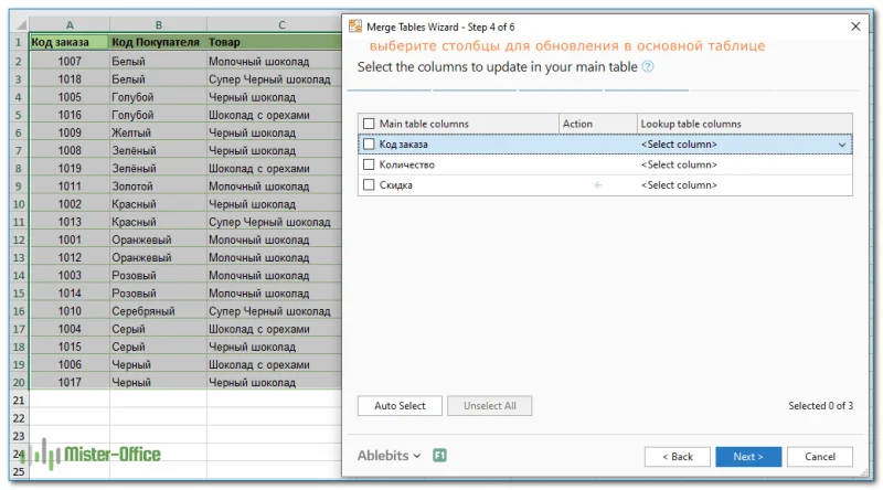 Шаг 4. Выбираем столбцы, информацию в которых нужно обновить.