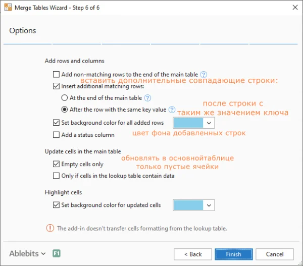 Чтобы не потерять уже имеющиеся в основной таблице значения, активируем опцию «Обновлять в основной таблице только пустые ячейки».